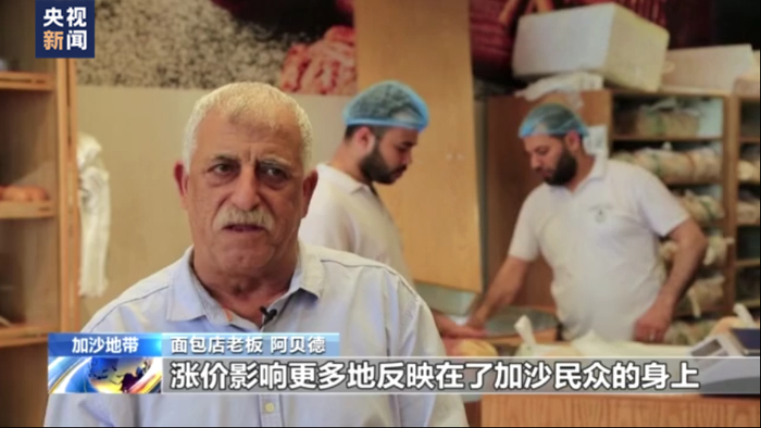 面包店老板 阿贝德:涨价影响更多地反映在了加沙民众的身上,你知道,现在形势艰难,工作不好找,工资也低,所以(粮食)哪怕涨价1块钱,对民众来说都很难熬。