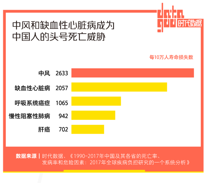 长期高盐摄入会导致血压升高,从而引发中风和心脏病。而在中国,近40%的死亡是由中风和心脏病引起。2017年的一项研究表明,在 282 种死亡原因中,中风和缺血性心脏病已经成为中国人的头号死亡威胁。