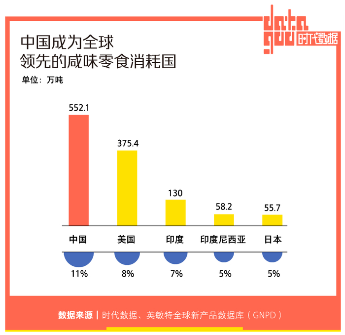 根据英敏特发布的数据,亚洲引领着全球五分之四的咸味零食创新。中国市场推出的咸味零食新品数量在2018年全球咸味零食新品总数中位居第一。