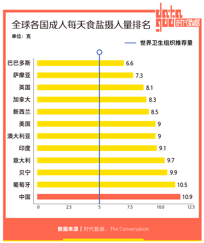 中国人对盐的美味了如指掌,却也因此在不知不觉中食盐过量。世界卫生组织(WHO)建议,成人每日盐摄入量不超过5克。