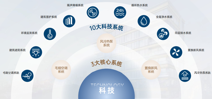 3、最后是,绿色科技理念的应用。我们倡导绿色健康为本的生活方式,实现从“有居”到“优居”的深层改善,始终强调“绿色生态、健康社区、科技生活、智慧服务”的四大理念,形成了完善的绿色健康产品和服务,我们的住区价值体系涵盖九大方面,包括空气监测、九重防噪、恒温恒湿、低碳保温等。我们的产品也广泛应用了十大建筑科技系统,包括毛细空调系统、风冷热泵系统、隔声降噪系统、环境监测系统等。我们坚持响应政府有关绿色低碳发展的号召,为城市绿色安居的建设和发展添砖加瓦。
