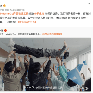 以用户体验与技术性能为核心,持续深耕设计领域,MasterGo不仅与同样对产品设计有极致追求的罗永浩产生共鸣,也为数字经济时代下企业进行协同化与数字化转型提供了强劲助力。作为重要的生产力工具,MasterGo 将让更多企业看到数字化转型的未来图景,并以此成为协同时代当之无愧的首选设计工具。