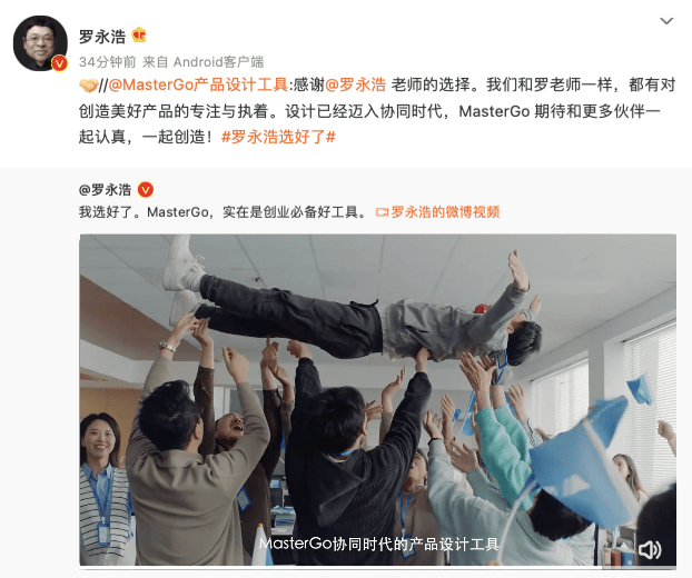 罗永浩“选好了”,称MasterGo为创业必备好工具