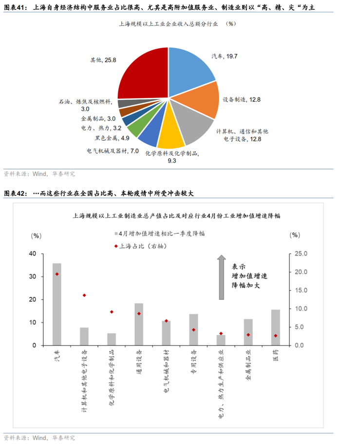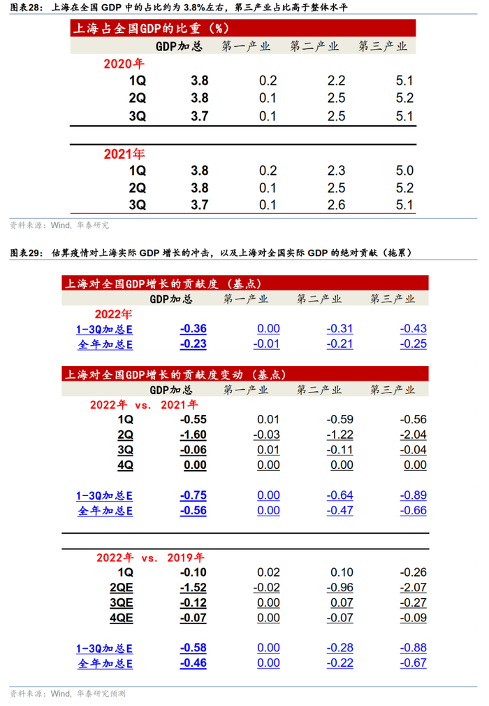 上海 GDP 占全国 3.8%,服务业占比更高。此外,上海及周边地区是重要的国际国内交通枢纽,外贸及外商投资胜地;高附加值、长产业链的制造业聚集。所以,上海本次封控对内外需的“辐射性”影响明显高于武汉。