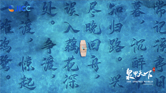 “常记溪亭日暮,沉醉不知归路,兴尽晚回舟,误入藕花深处,争渡,争渡,惊起一滩鸥鹭”。宣传片通过李清照的情景再现,展现了济南小桥流水、烟雨入梦的婉约之美。碧水如眸、温婉灵动;鱼翔浅底,浮光耀金;喷珠溅玉,散落人间。水面之下,更是气象万千,泉水如珠玑升腾,美轮美奂;碧绿水草摇曳多姿,风姿绰约,惊鸿一瞥,便惊艳了千年岁月。