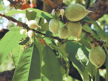 “中塔友谊杏树林”中的杏树上结出零零星星青绿的小杏子,外面还有一层白色细毛的“茸衣”,迎着阳光看,像镀了一层透光的银边。一些野生山桃也结果了,这种果子长不大,果核大,果肉小,记者沿路找到了“绛桃”“品虹桃”的果树,核桃大小的野桃挂在树梢,风吹来像铃铛一样晃动,煞是可爱。