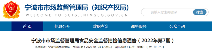 中国质量新闻网讯 近日,浙江省宁波市市场监督管理局发布食品安全监督抽检信息通告(2022年第7期)。
