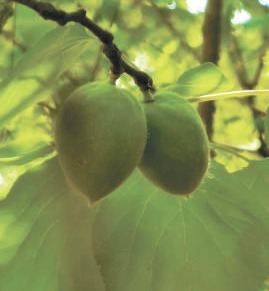 “中塔友谊杏树林”中的杏树上结出零零星星青绿的小杏子,外面还有一层白色细毛的“茸衣”,迎着阳光看,像镀了一层透光的银边。一些野生山桃也结果了,这种果子长不大,果核大,果肉小,记者沿路找到了“绛桃”“品虹桃”的果树,核桃大小的野桃挂在树梢,风吹来像铃铛一样晃动,煞是可爱。