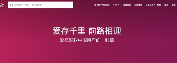 5月24日,爱彼迎官网发布《爱存千里,前路相迎:爱彼迎致中国用户的一封信》,宣布即将暂停中国本土业务。公告中称,此后爱彼迎将“固本培元”,全面服务于出境游。