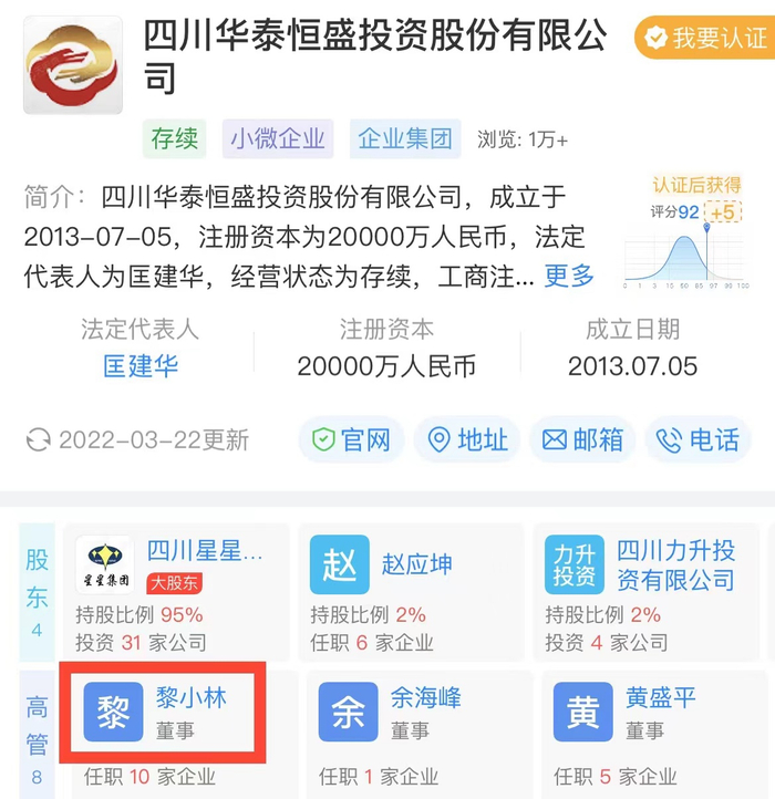 但二人的关系远不止于此。能航基金的实控人名叫黎小林,是黎仁超的兄弟,而黎小林同样在匡建华控制的华泰恒盛担任董事。