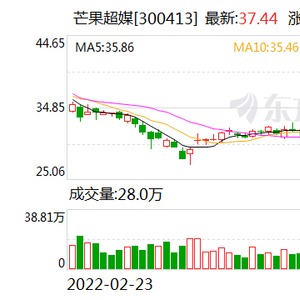 5月24日,芒果超媒逆市大涨,盘中涨幅一度扩大至10%,截至收盘,芒果超媒报37.44元,涨幅5.46%,总市值约700亿元。