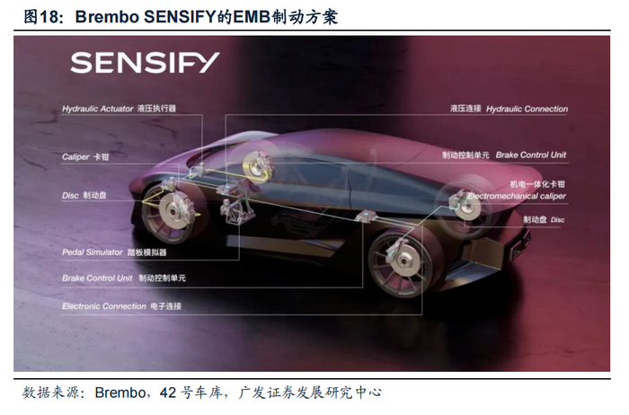 当前零部件厂商加快布局EMB产品研发,技术突破在即。21年12月Brembo推出其首创的全新智能制动系统SENSIFY;Mando在2021年CES展上也发布了EMB线控制动技术。国内制动厂商中,瀚德万安已推出商用车EMB产品,长城旗下的精工底盘也已于2021年4月上海车展期间发布针对乘用车的EMB产品。