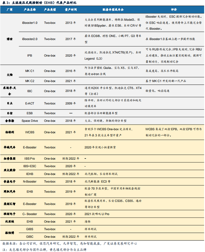 第一梯队:技术研发能力强、已量产线控制动产品的国外供应商。此类公司具备开发线控制动系统的能力,拥有较成熟的制动系统生产技术,能够不断研发升级线控制动产品;