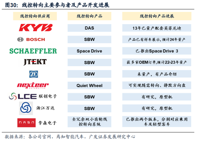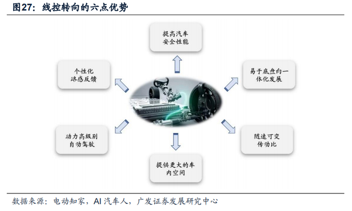 (3)随着法规端的开放,线控转向研发、应用或将加速。国标GB 17675-2021《汽车转向系基本要求》删除了“不得使用全动力转向机构”的要求,标志着法规端开放了线控转向的应用,有助于线控转向的发展。