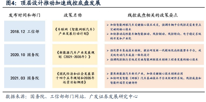 1. 政策端:顶层设计推动,线控底盘是实现电动化、智能化的关键