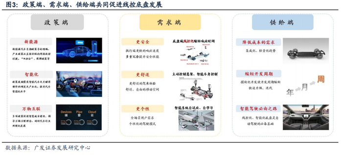 一、政策端、需求端和供给端助力线控底盘加速发展