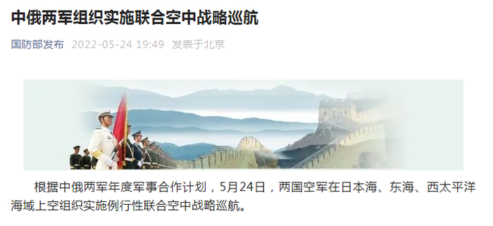 24日晚,一则重磅消息被官宣——中俄两军组织实施联合空中战略巡航。中国国防部发布的消息还是一贯的“字少事大”:根据中俄两军年度军事合作计划,5月24日,两国空军在日本海、东海、西太平洋海域上空组织实施例行性联合空中战略巡航。