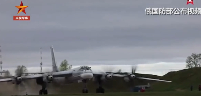 俄军方发布的图-95起飞的画面。