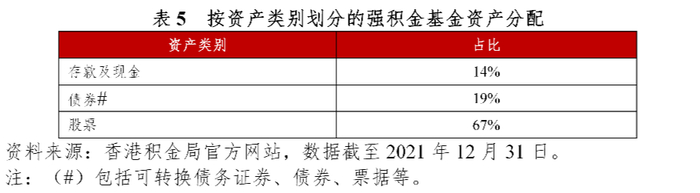 就资产分配而言,股票资产在2021年12月底占强积金基金总资产的67%。