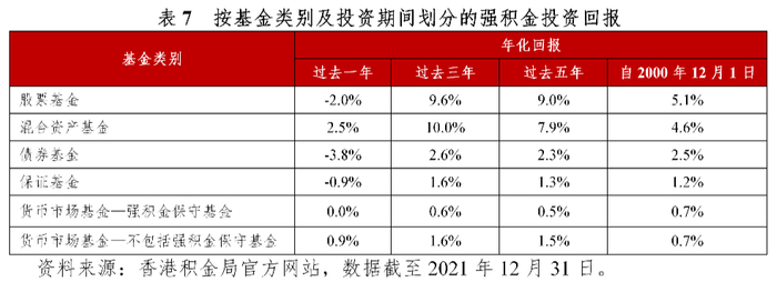 强积金制度的投资表现如下: