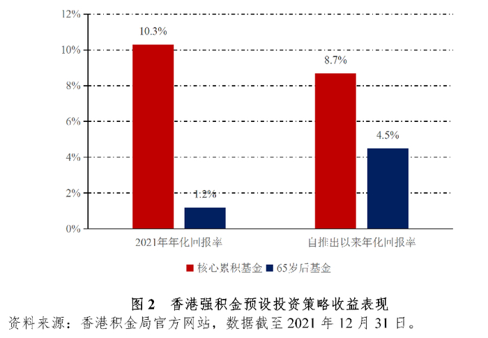 在2021年,核心累积基金及65岁后基金的回报分别为10.3%及1.2%。自2017年4月推出以来,核心累积基金及65岁后基金的年化回报分别8.7%及4.5%。