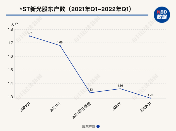 截至2022年4月20日,*ST新光股东户数为1.27万户,较上期(2022年4月8日)减少129户,减幅为1%。