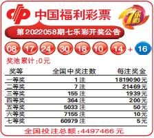 中国福利彩票第2022058期七乐彩开奖公告