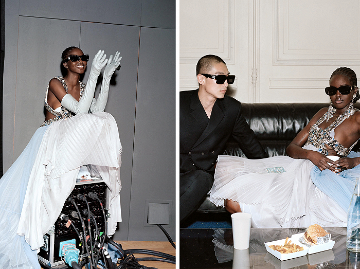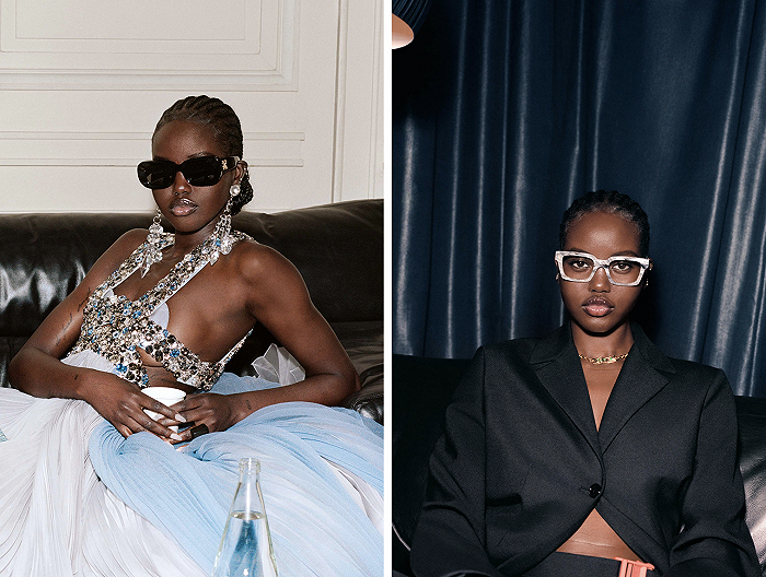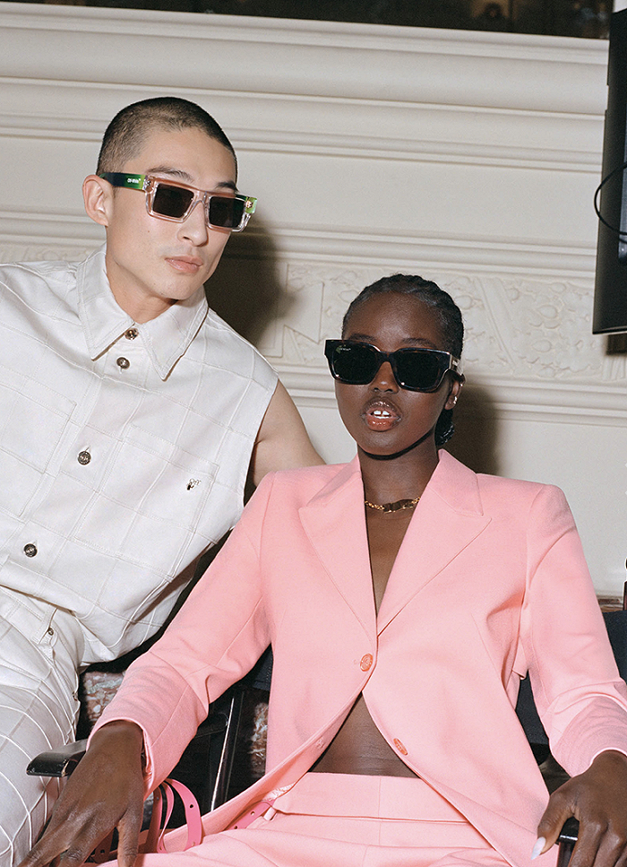 由摄影师Lukas Wassmann掌镜,模特Adut Akech和Sang Woo演绎的Off-White™ 2022春夏眼镜系列眼镜宣传大片于最近释出,该系列旨在致敬已故设计师Virgil Abloh所创造的现代美学表达方式,大胆且带有建筑性线条的几何形镜框,极具品牌特色。
