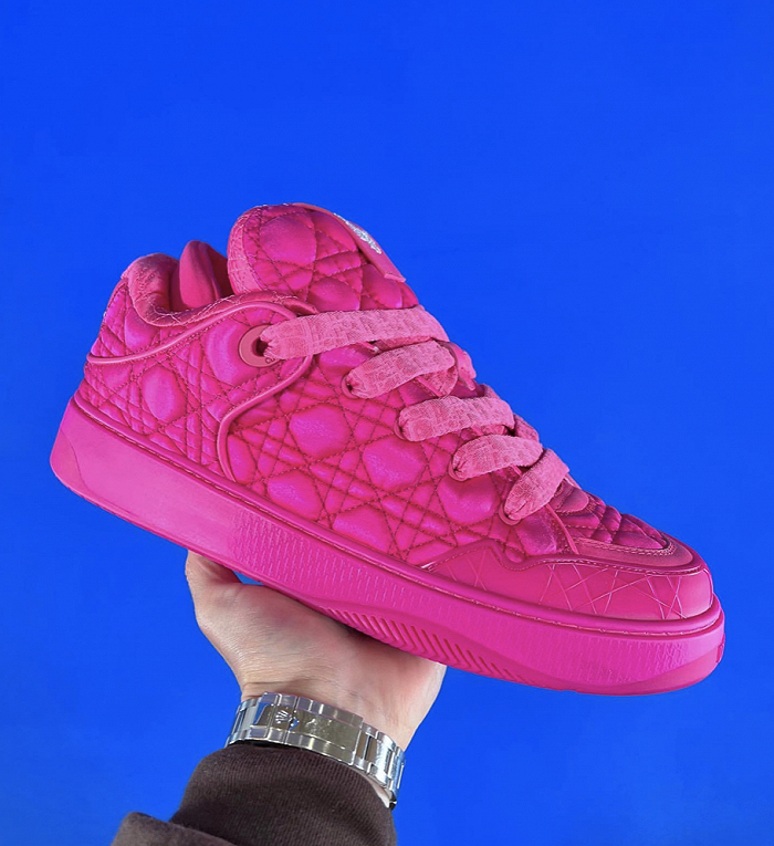 此次,迪奥男士鞋履设计师 Thibo Denis采用滑板鞋轮廓,为该鞋款融入经典藤格纹,鲜艳配色以及代表ERL的西海岸街头文化特征,多处细节的展现让它与传统滑板鞋款式鲜明区分,让街头潮酷风格与迪奥优雅DNA适当融合,保留品牌特色的同时呈现出一种独特的街头优雅格调。目前,DIOR x ERL联乘鞋暂无发售信息,喜欢的朋友可要盯紧官方发布的信息,预计这又将是一款拥有极高话题讨论度的爆款单品。