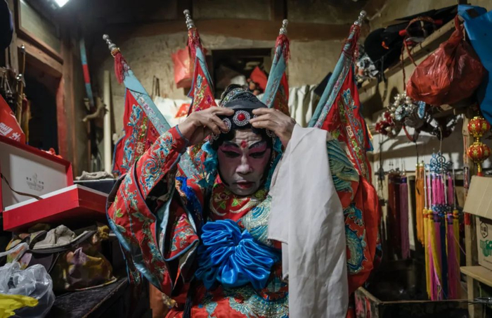 直到有一天,这唱了几百年的戏随着村子里老人离世、年轻人进城,快要唱不下去了,舞台要吹灯,戏班里的一老人着急,申请区级“非物质文化遗产”,他想的是能得到官方认可,对戏班今后的传承和村里的旅游发展都有好处。