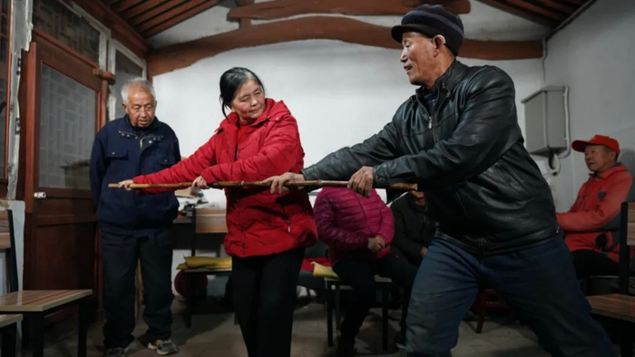申遗这事从2004年开始,花了16年,到2020年8月总算成功了。但“传承”不是说说,是承担责任的事,正因为这个,几个中年村民喝了顿大酒,满腔热情地组成了青年社,真的开始学习功夫,他们暗下决心,总有一天要登台和老班子一起唱,来传承古村特色。