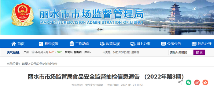 浙江省丽水市抽检190批次食品不合格3批次