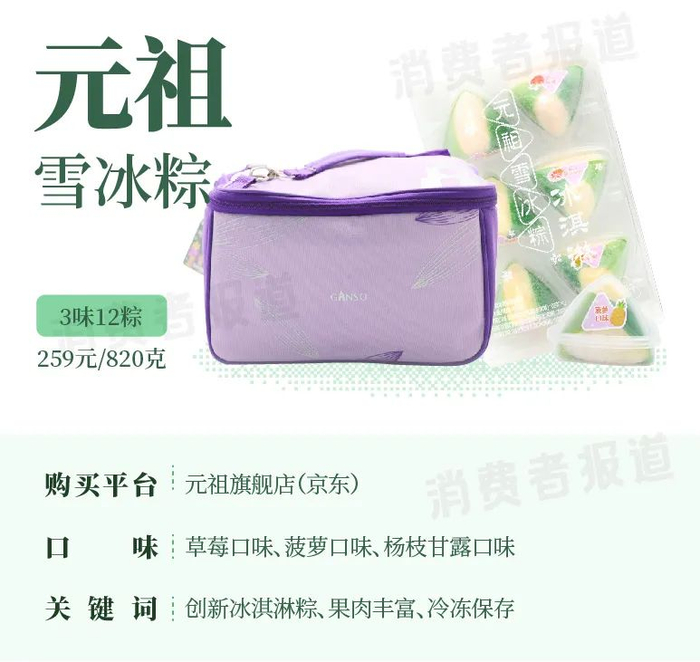 试吃官鸡腿子点评道“菠萝味和杨枝甘露味浓郁,但好吃归好吃,这款产品有点像内馅是冰淇淋的大福,跟粽子除了形状像,没有五毛钱关系”。试吃官蒙娜丽墨表示“啖啖果肉,而冰冰凉凉,很适合夏天吃,但是外带不方便;这款其实就是粽子形状的雪糕,甚至连粽叶都是假的”。
