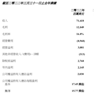 2022年5月26日,联想集团(HKSE:992)(ADR:LNVGY)公布2021/22财年全年(2021年4月-2022年3月)及第四季度业绩:全年营业额近4600亿人民币,同比增长18%,大涨700亿人民币;全年净利润首次突破百亿大关,达到130亿人民币,同比增长72%。