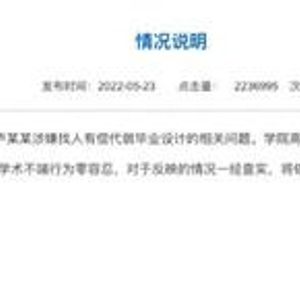 中国经济周刊-经济网讯(记者 郭霁瑶) 5月22日,有网友在百度贴吧发帖称,西安电子科技大学两名学生找其代做毕业设计,完成后却以各种理由拒不付款。该帖一经发出,引发网友热议。目前原帖已被删除。5月23日,西安电子科技大学计算机科学与技术学院发布情况说明,决定暂停两名学生的毕业设计答辩工作。