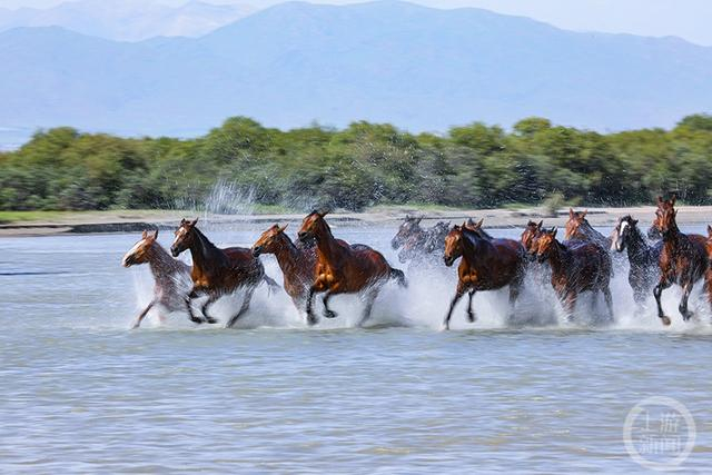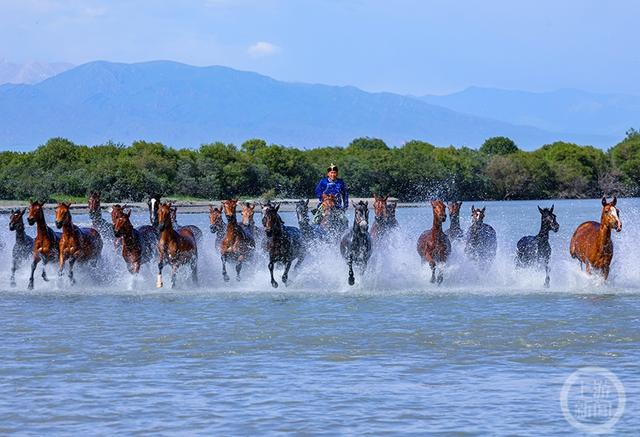 骏马踏浪 风光无限的昭苏湿地公园