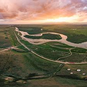 晚霞中的昭苏湿地公园。