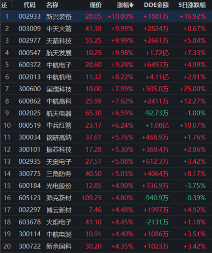 从个股来看,国防军工行业98只交易的个股中,有90只上涨,其中,有4只个股涨停报收。