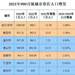 21世纪经济研究院认为,人口会向经济发展、营商环境、公共服务水平、人均可支配收入等相对更好的城市进一步集聚。目前来看,工业基础较好,人口突破950万人的温州、佛山和宁波的机会最大,这三个城市均为东部增长强劲的地级市。