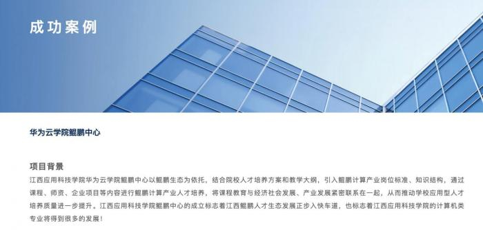 比如,2020年7月,公司依托旗下中软国际教育与江西应用科技学院签署了鲲鹏人才培养合作协议,设立华为云学院鲲鹏中心,就是典型一例。