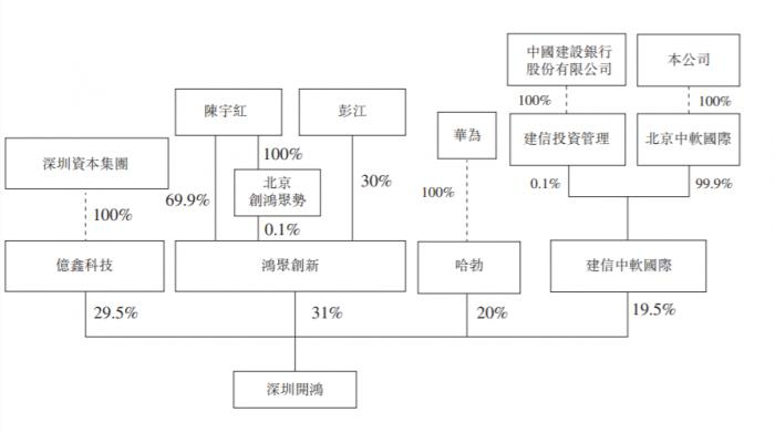 2021年12月,中软国际将其控股权转让于“鸿聚创新”,后者为陈宇红个人控制的合伙企业,之后,华为哈勃、鸿聚创新以及亿鑫科技等,共同为深开鸿注资2亿元。