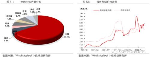 从焦煤的全球需求来看,根据世界钢铁协会的统计数据,2021年,全球长流程生铁产量总计13.14亿吨,其中,中国生铁产量8.7亿吨,占比超65%,是世界上最大的炼焦煤消费国和进口国。受新冠疫情影响,2020年,海外生铁产量大幅下滑。2021年,疫情影响弱化,海外钢铁产业复苏,带动全球焦煤需求增长,推涨焦煤价格中枢。而今年以来,在全球宽松退潮、海外经济下行的大背景下,钢材需求难有明显增量。今年一季度,除中国外全球生铁产量1.1亿吨,同比降4.35%,若延续当前的钢材生产和需求强度,今年全球焦煤需求或将有所回落。而从海外焦煤矿山的生产情况来看,必和必拓、英美资源、嘉能可等主流矿山近年的生产计划均以稳为主,焦煤业务资本开支增量趋缓或成为整体趋势。