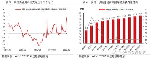 2021年保供政策的推行,主要源于前期煤炭经历了去产能阶段,且经济复苏的拉动效应和出口红利使得煤炭去年需求大幅增加,进而供需不平衡带来了煤价疯涨,挤压中下游制造业利润和带来通胀等一系列问题。因此“能源的饭碗必须端在自己的手里”目标意义深远,煤炭作为我国资源禀赋的能源品种,预期在新能源替代及制造业生产技术变革尚未充分且稳定释放时,仍是社会主要能耗的基础,故2020年煤炭工业协会的年度报告提出“到2025年国内产量稳定在41亿吨以内”预期不再,而是变成近两年通过原有产能的稳定生产、永久性核增产能的释放、以及停工停产的煤矿复产等多种手段集中快速释放产量,根据我们的统计,截至2022年3月,目前已经将国内煤炭有效产能提升至43亿吨左右,同时还有近1.5亿吨的产能等待释放。