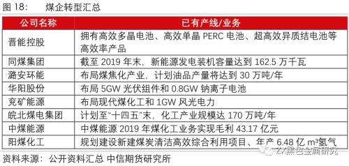 因不同煤种的下游行业未来发展各异,故企业相应的转型布局也有所不同,故我们将动力煤和焦煤企业进行不同的梳理。