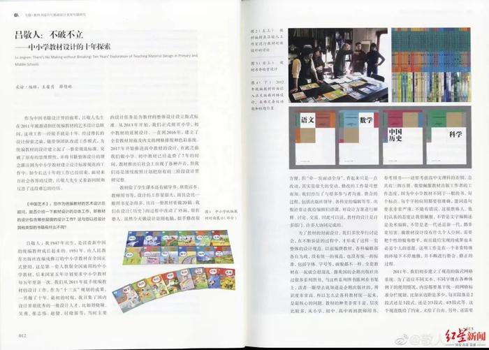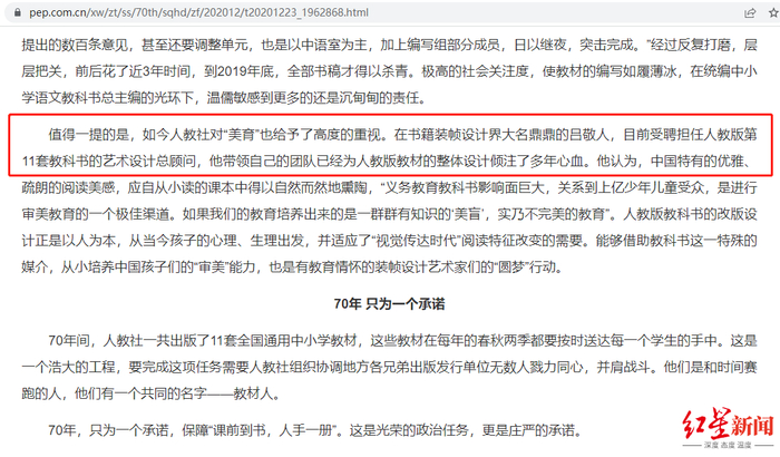 而据人民教育出版社官网介绍,书籍装帧设计界泰斗吕敬人曾受聘担任人教版第11套教科书的艺术设计总顾问,其带领自己的团队已经为人教版教材的整体设计倾注了多年心血。