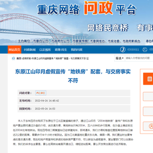 重庆两江新区市场监管局回复:经查,东原江山印月属重庆东悦安房地产开发有限公司项目,针对重庆东悦安房地产开发有限公司发布上述宣传广告的情况本局已立案。