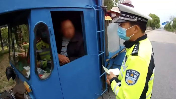 5月10日,扬州交警在331省道巡查过程中发现蒋某使用农用拖拉机违法载人。