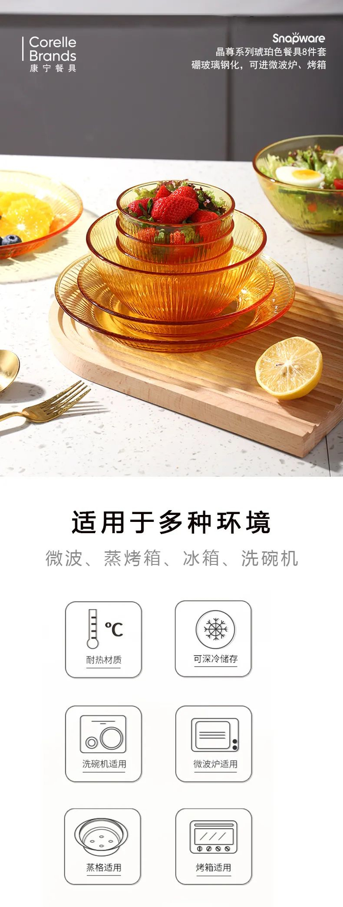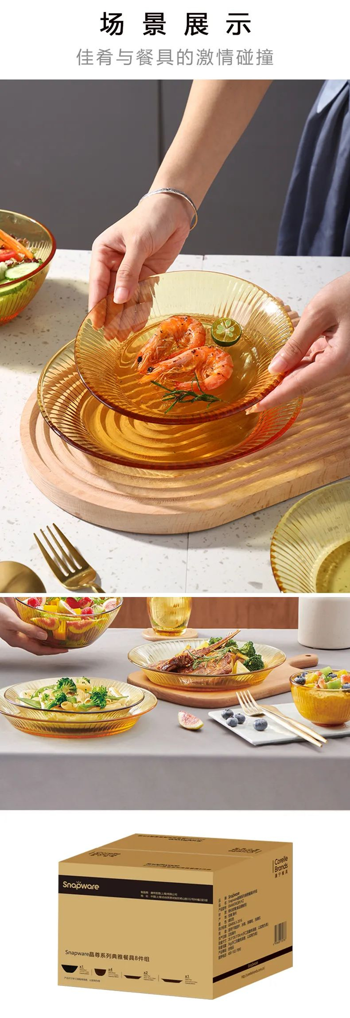 比如这套康宁SNAPWARE晶尊系列餐具8件套,高级琥珀色系,设计简约个性,中餐西餐搭配游刃有余~