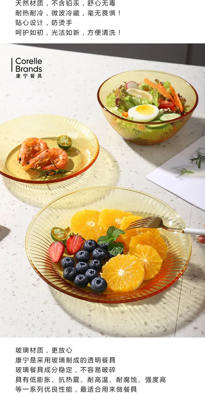 这套康宁餐具为玻璃材质,且坚固不易碎,颜值有保障,刚好满足需求!