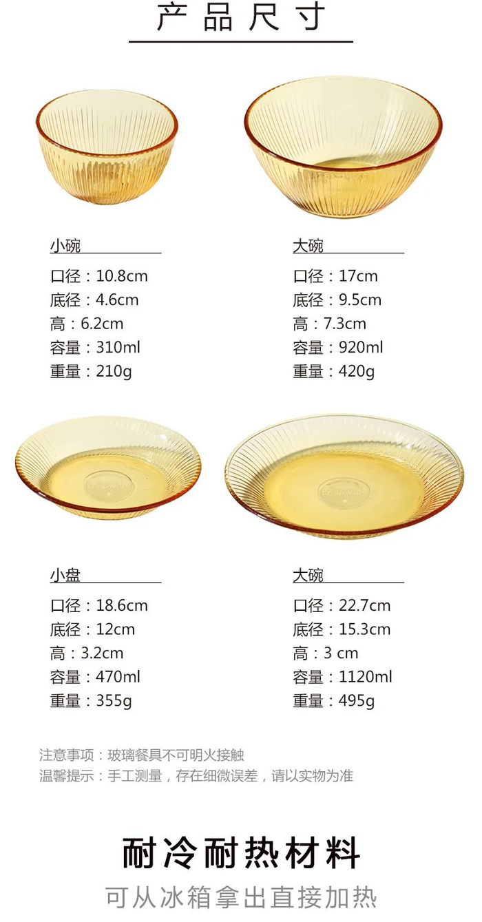 康宁是世界著名的厨具用品品牌,是特殊玻璃和陶瓷材料的全球领导厂商。它家最经典的就是琥珀色餐具,唯一的缺点就是——贵!